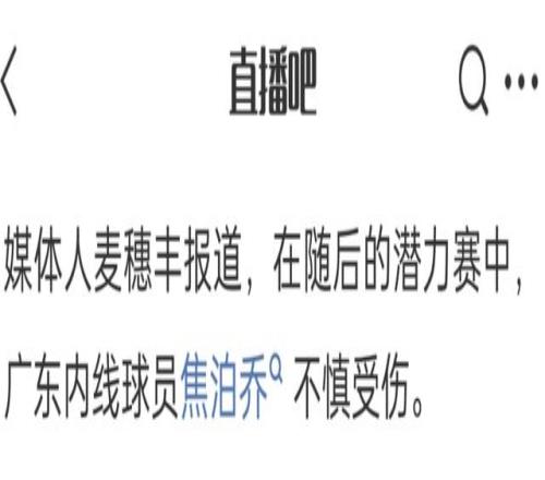 好在焦泊乔不是很严重,但应该会缺席一场比赛,这对于广东宏远还是有不小的影响。