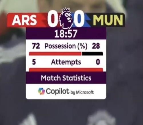 比赛开局阶段阿森纳占据绝对优势,根据前19分钟的技术统计,阿森纳的控球率高达72%,曼联仅为28%,前19分钟枪手还尝试了5脚射门,而红魔的射门次数仍为0。